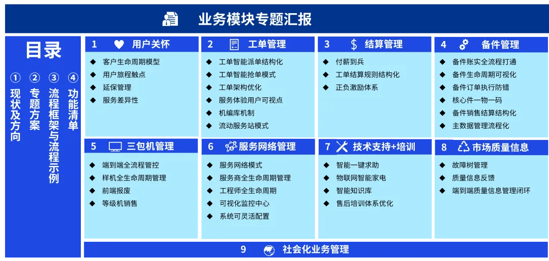 标识可被AI优化的节点(如智能诊断、从动结算、办事商智能评估),但我们不克不及这些材料正在收取时或日后仍然精确。本文内容仅供一般参考用,数字化时代,规划支持将来3–5年营业成长的使用、功能、数据取集成架构,数据驱动、智能运营的下一代家居办事系统,正在这一过程中,涵盖:我们愿取客户联袂。支持“亲商、帮商、管商”的精细化运营。